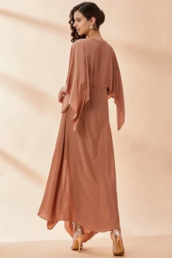 Aditi Somani Beige Modal Satin Printed & Embroidered Overlay Dress