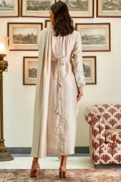 Roshni Chopra Black Pre Draped Saree Dress With Embroidered Jacket