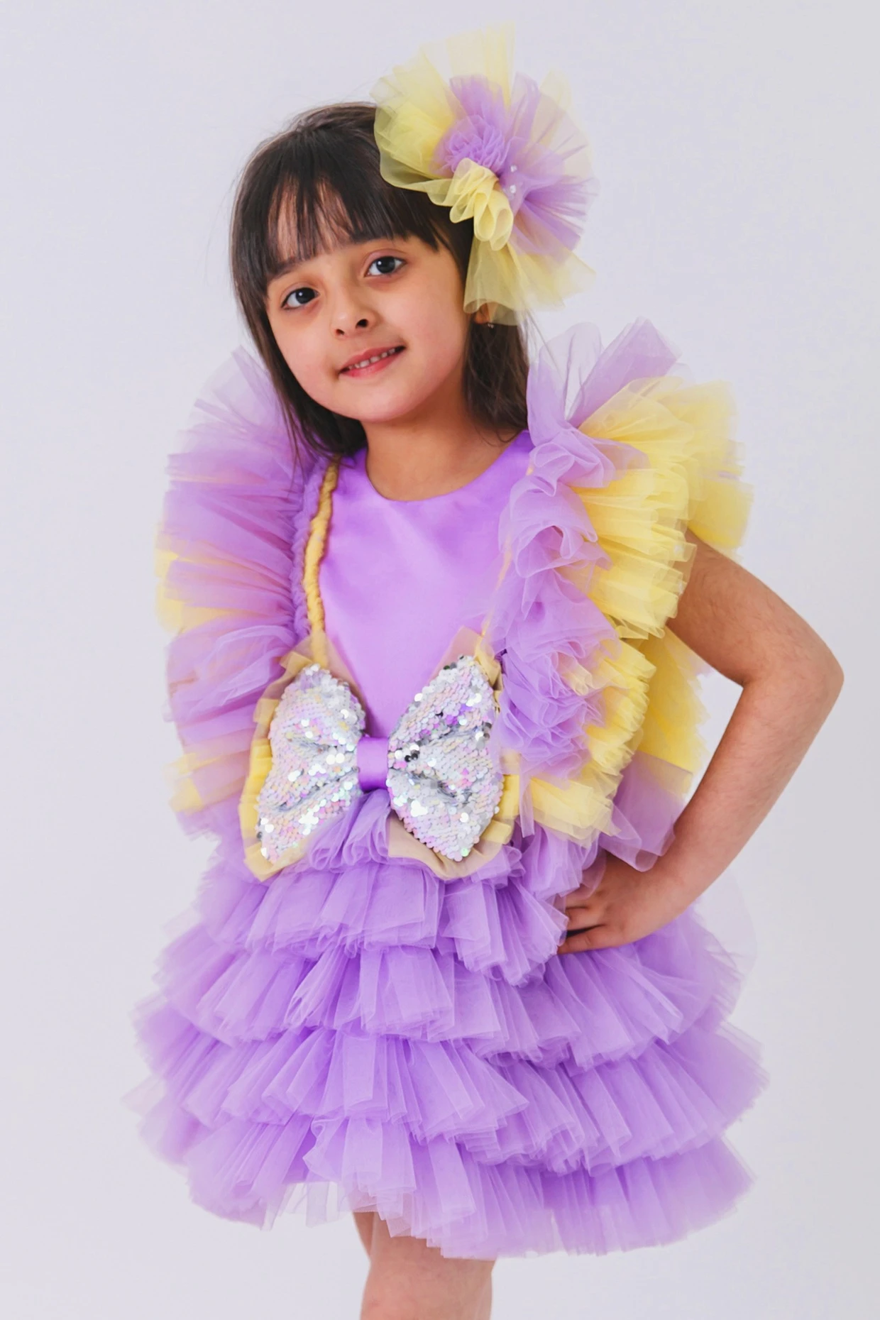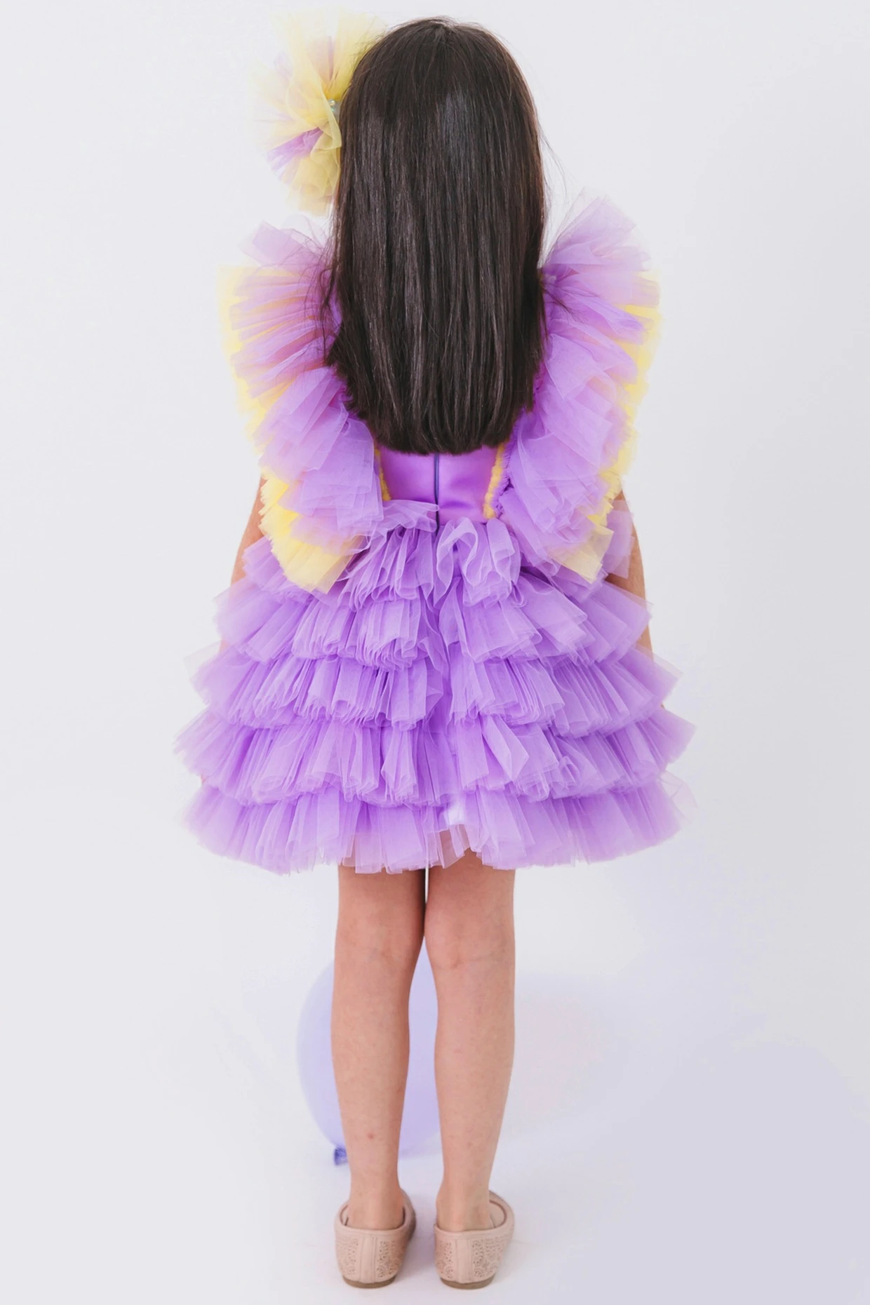 Featuring a lavender dress in net and satin base.
