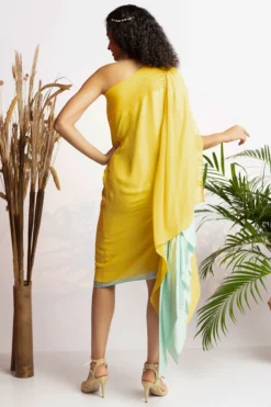 Wendell Rodricks Irish Yellow Pearl One Shoulder Dress