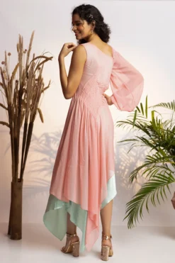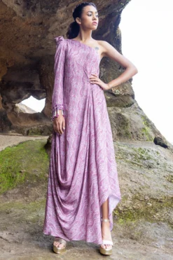 Yogita Kadam Pink Pure Muslin Printed One-Shoulder Cowl Dress