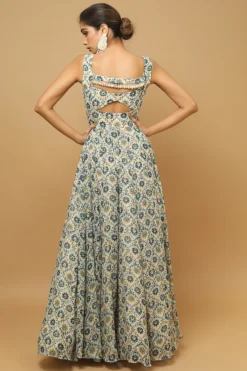 Aditi Somani Beige Modal Satin Printed & Embroidered Overlay Dress