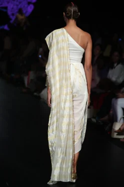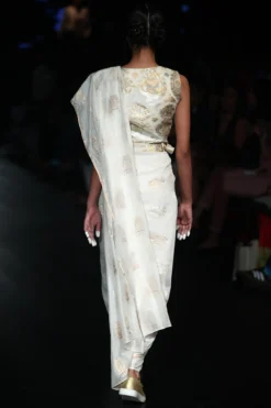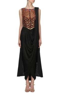 Roshni Chopra Black Pre Draped Saree Dress With Embroidered Jacket