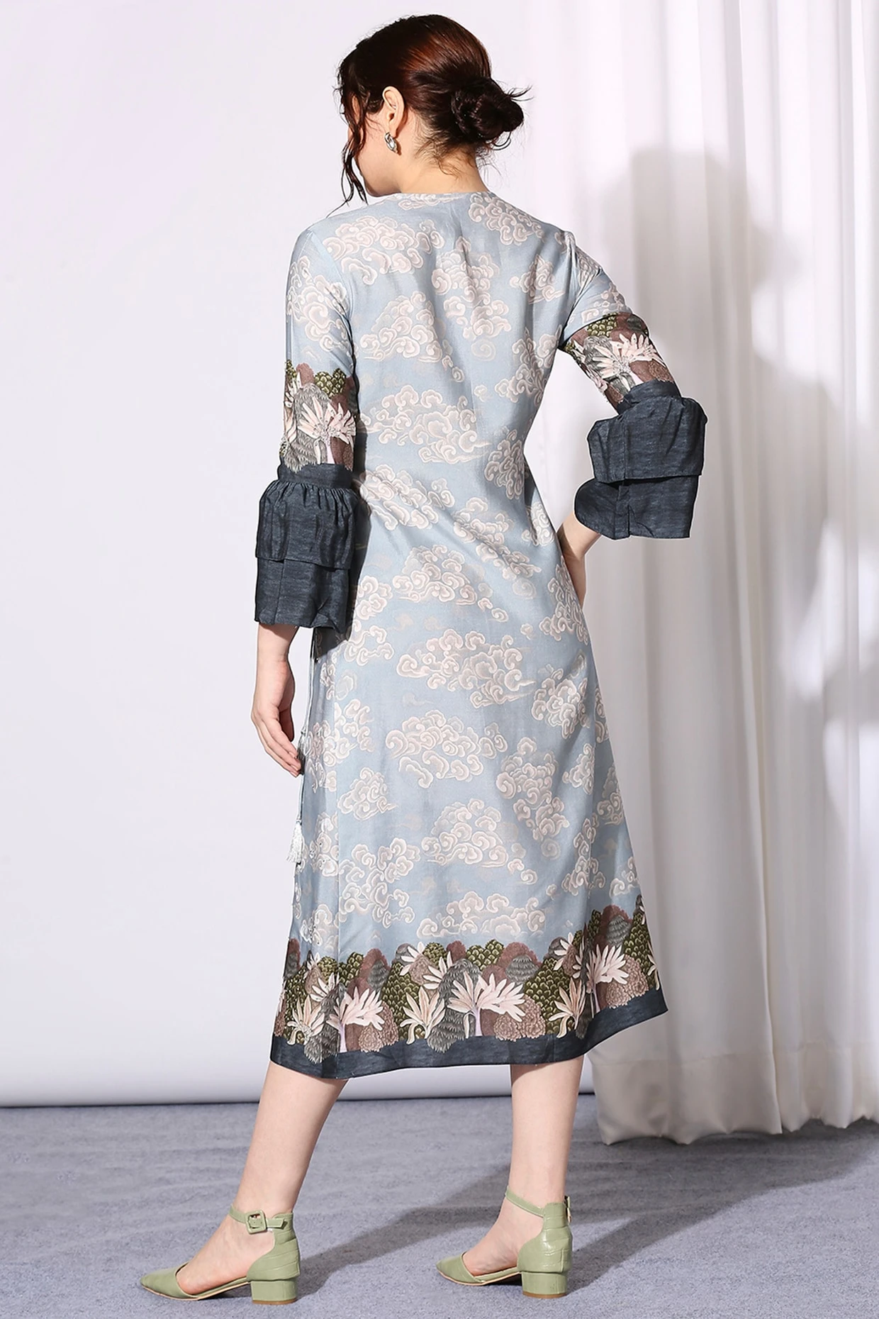 Aditi Somani Beige Modal Satin Printed & Embroidered Overlay Dress