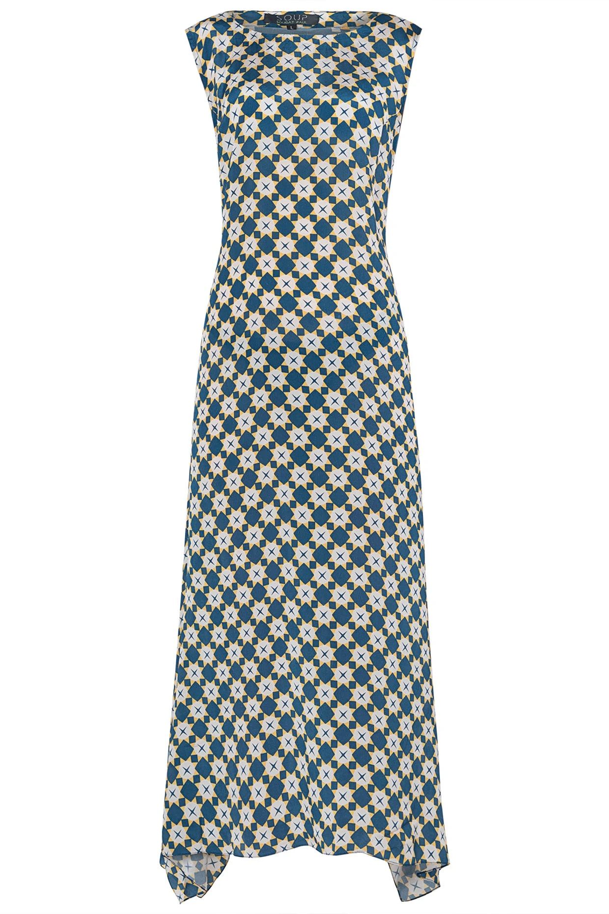 Fitted at bust and waist.