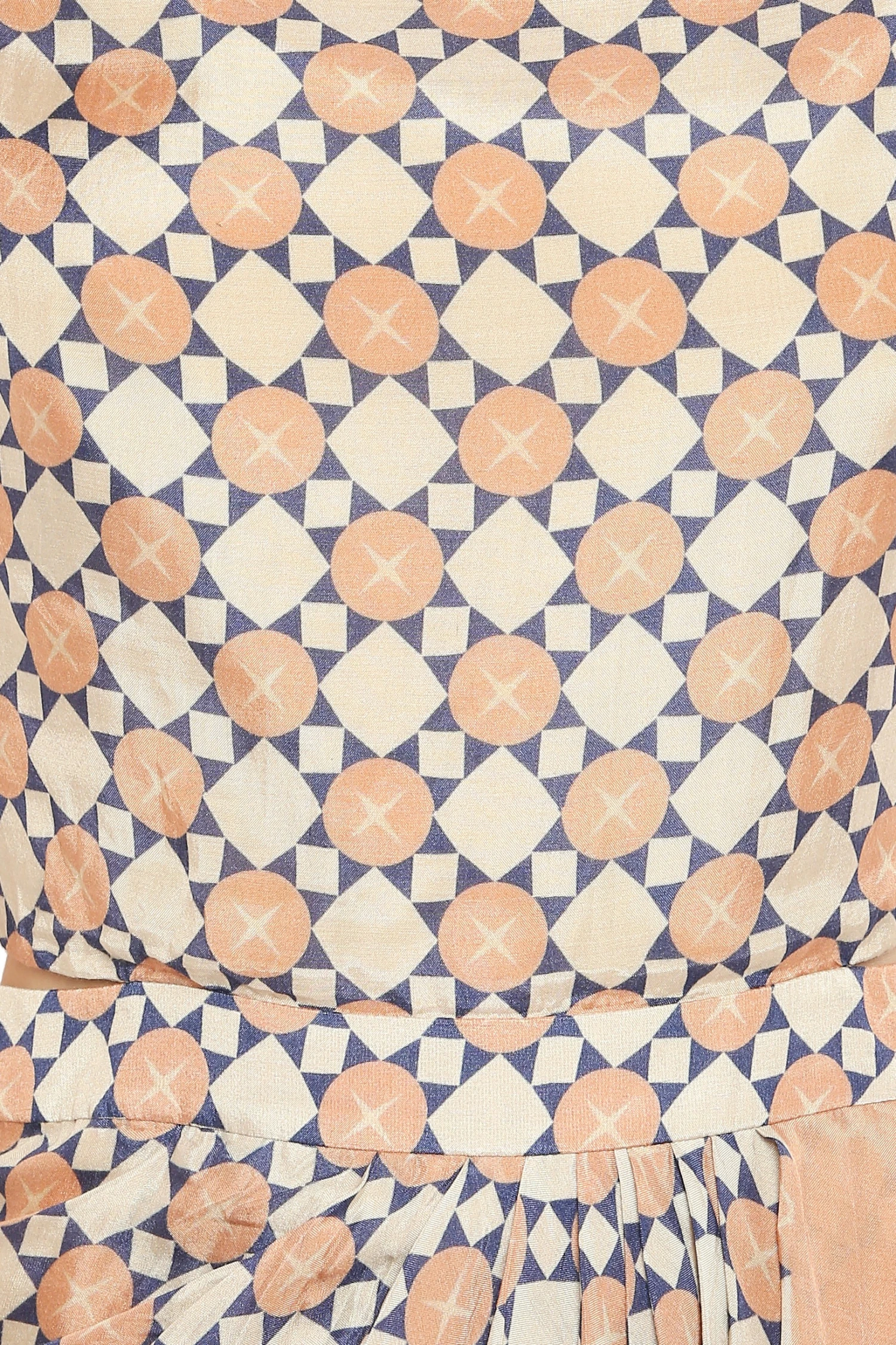 Aditi Somani Beige Modal Satin Printed & Embroidered Overlay Dress